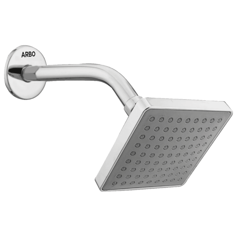 ShowerOverhead Shower OS-302 5″×5″ Inch Square Overhead Shower with 9″ Long 45° Bend Wall Mounted Shower Arm with Flange