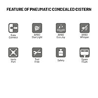 Upgrade your toilet area with the CC-11 Pneumatic Concealed Dual Flush Cistern with MS Full Frame Accessories. Engineered for efficient flushing performance and water conservation, featuring dual flush capacities of 10/5 Ltr. 8/4 Ltr.