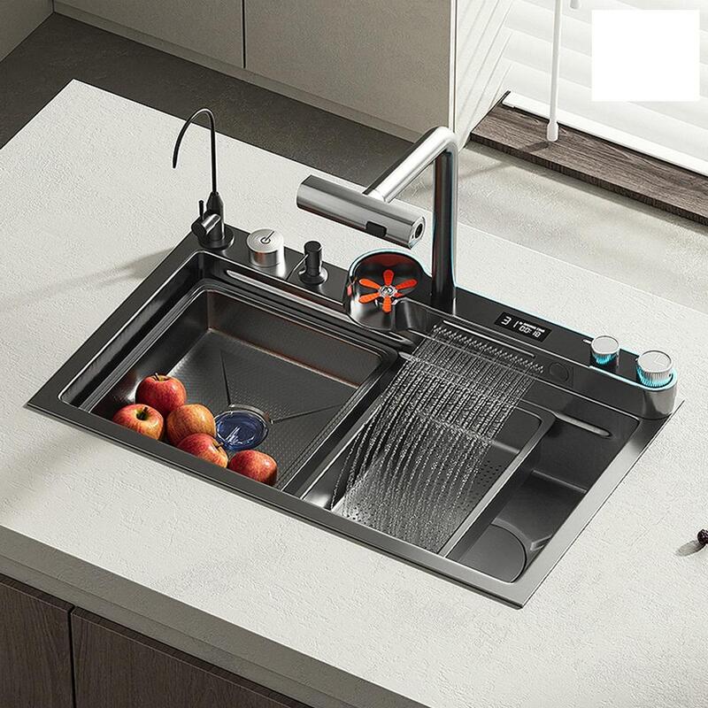 HM-36 Moduler Smart Kitchen Sink 30" x 18" x 9" Inch Hand Made Waterfall With RO Faucet Black