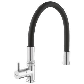 The EL-1811 Swan Neck with Flexible Swinging Spout (Table Mounted) from the Elite Collection features a silver-finished brass body and 15 mm cartridge, ideal for dynamic water control in kitchen and basin spaces.