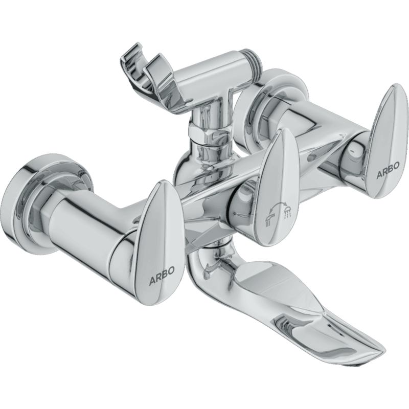 The KA-3121 Wall Mixer 2 In 1 With Crutch offers both practicality and design excellence for modern bathrooms. Engineered with a 20 mm durable cartridge and crafted from premium brass, this wall-mounted mixer ensures smooth and precise water flow control. Its integrated crutch design allows for seamless switching between water outlets, enhancing utility for showering or tap-based use. Finished in elegant silver and supported by robust connecting legs and a wall flange, this mixer adds both performance and style to any bathroom setting. Perfect for contemporary homes, hotels, and commercial bath spaces.