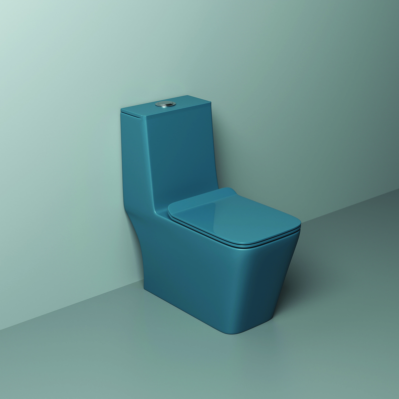 SanitarywareOne Pieces Closet OPC-LU-29211PP Luxe Blue Lavish Siphonic One Piece Closet S Trap (9" Inch) With Soft Close Seat Cover With Hinges, Fixing Accessories Set and Accessories Set, Cistern Fittings
