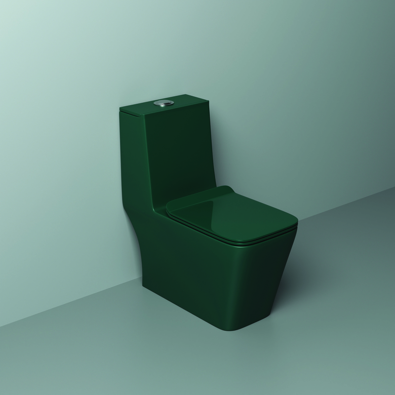 SanitarywareOne Pieces Closet OPC-PG-29211PP Peacock Green Lavish Siphonic One Piece Closet S Trap (9" Inch) With Soft Close Seat Cover With Hinges, Fixing Accessories Set and Accessories Set, Cistern Fittings