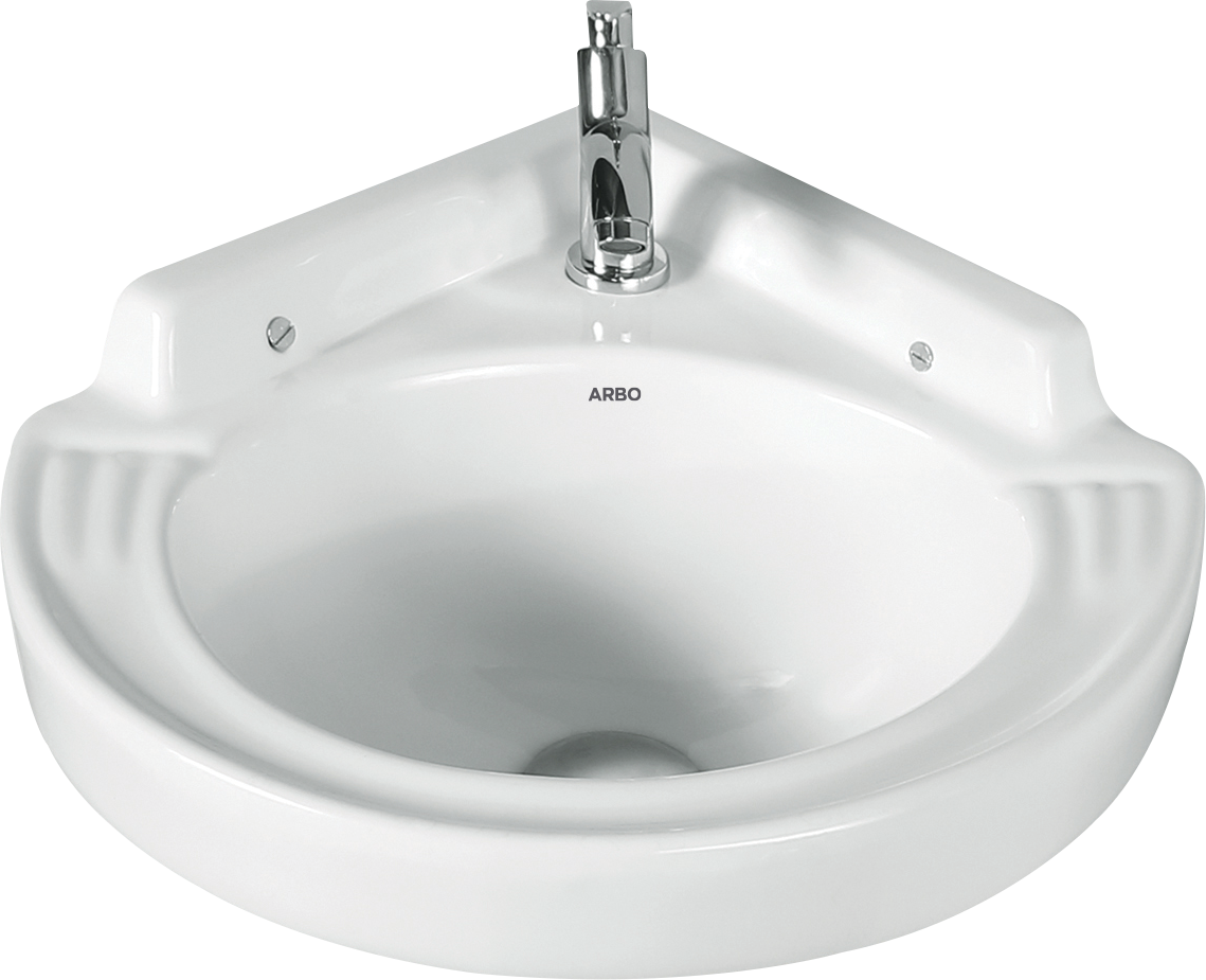 The WBT-25442 Cosmo Corner Wall Hung Basin (17 x 18) is a sleek, white ceramic basin ideal for optimizing corner spaces in modern bathrooms.